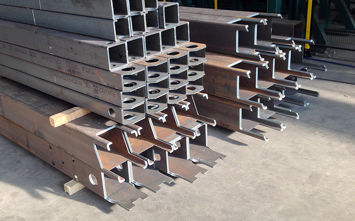 Taglio laser di componenti e travi per carpenteria metallica strutturale.